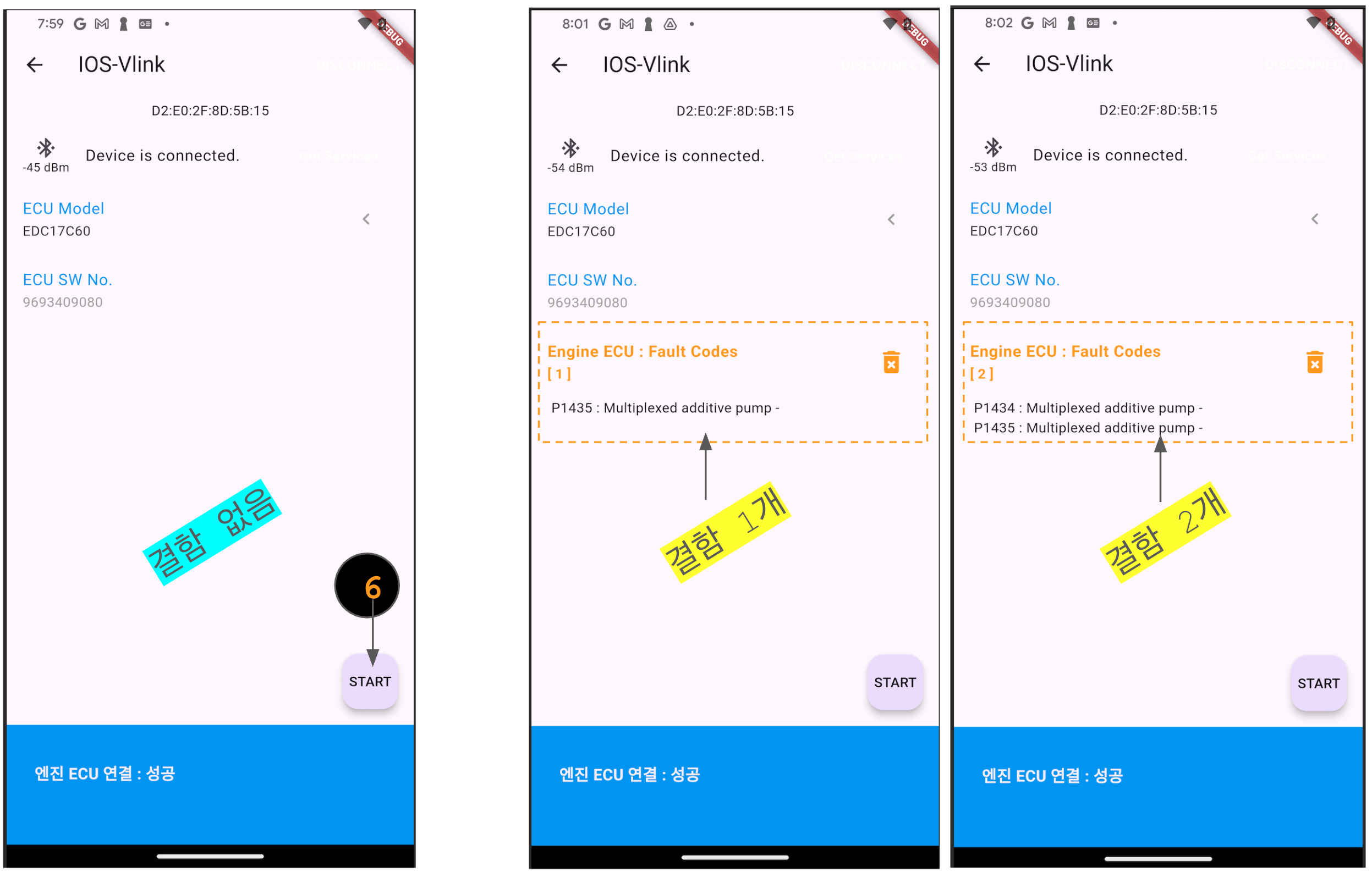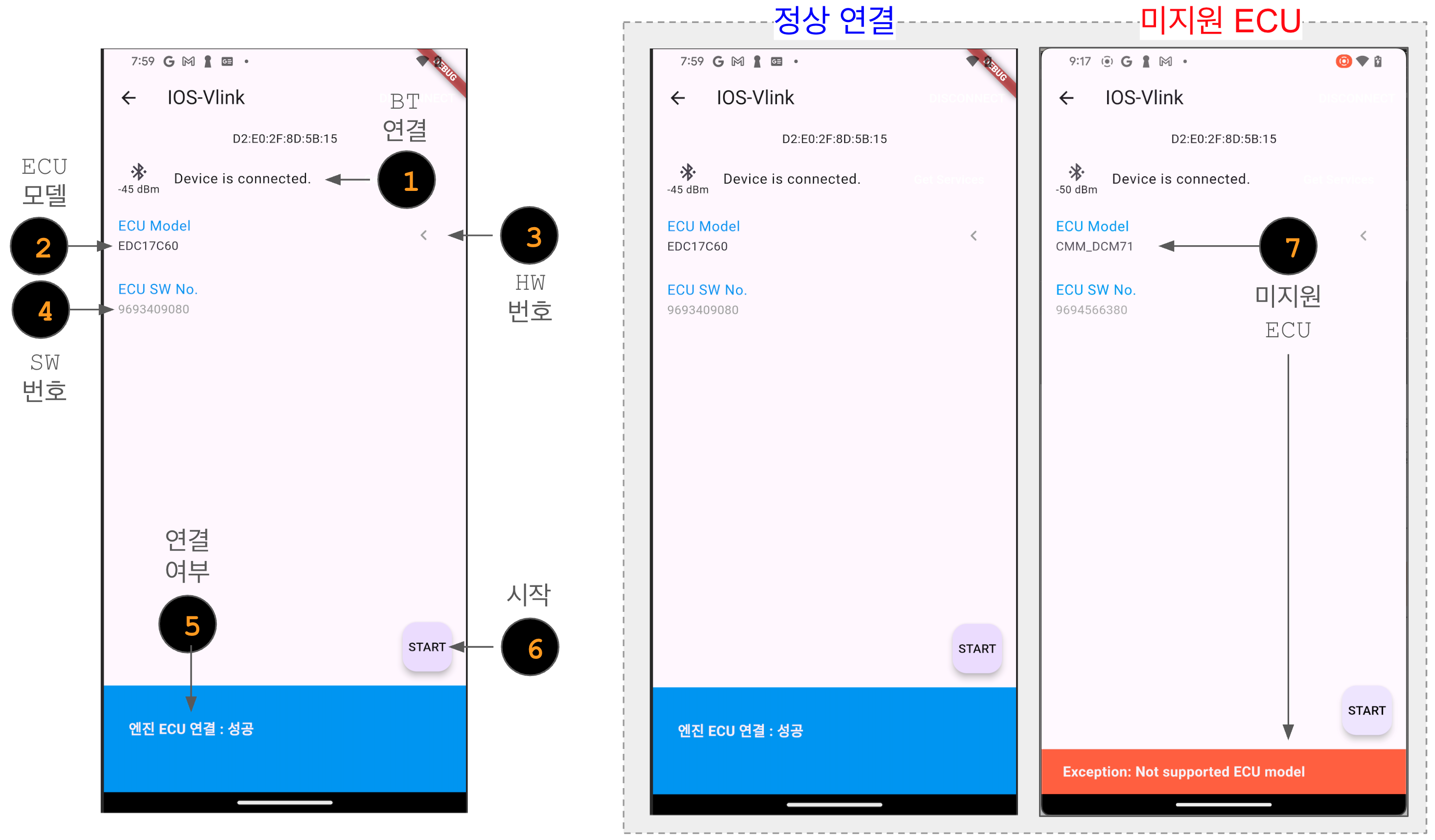 ⑤ 연결 메시지 : ECU 통신 성공 여부 표시
