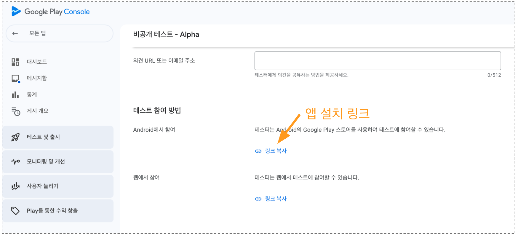 비공개 테스트 승인시 테스터분들에게 링크 복사후 gmail로 전송하는 것입니다.