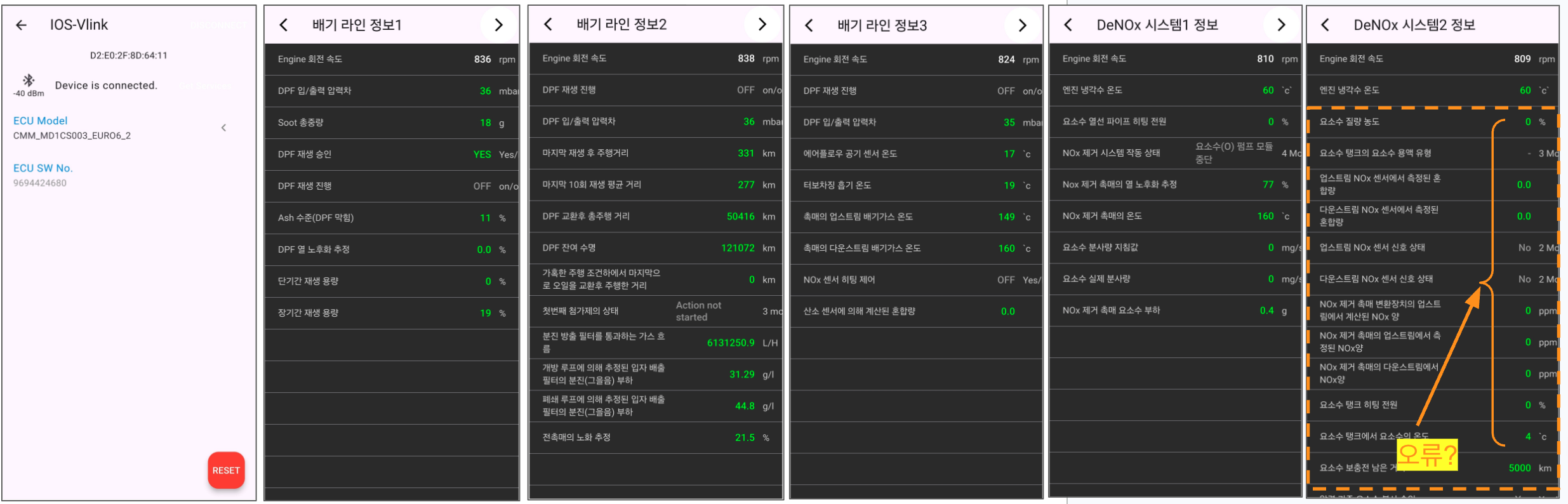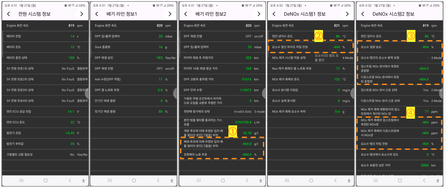 - DeNOx 시스템2 : 값 표시 오류 (사례 1과 동일 현상)