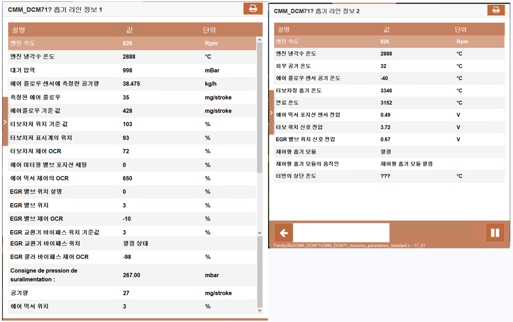 흡기라인 정보 1,2(Air Intake Line Information 1,2)까지 추가하는 것이 목표였는데 결국, 최종 지점까지 왔군요...