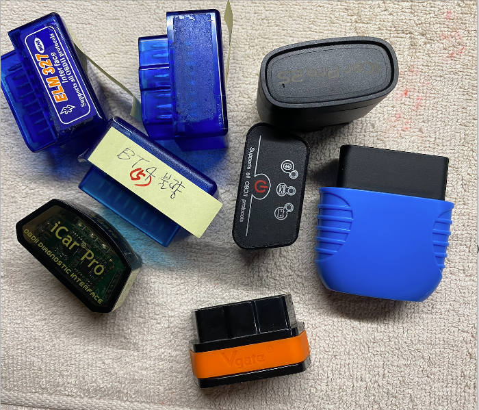 제품 호환성 점검을 위해, 초창기 사용했던 OBD 스캐너가 6개(링크1) 이고 얼마전 추가로 구매한 2개(링크) 포함하면 8개이고