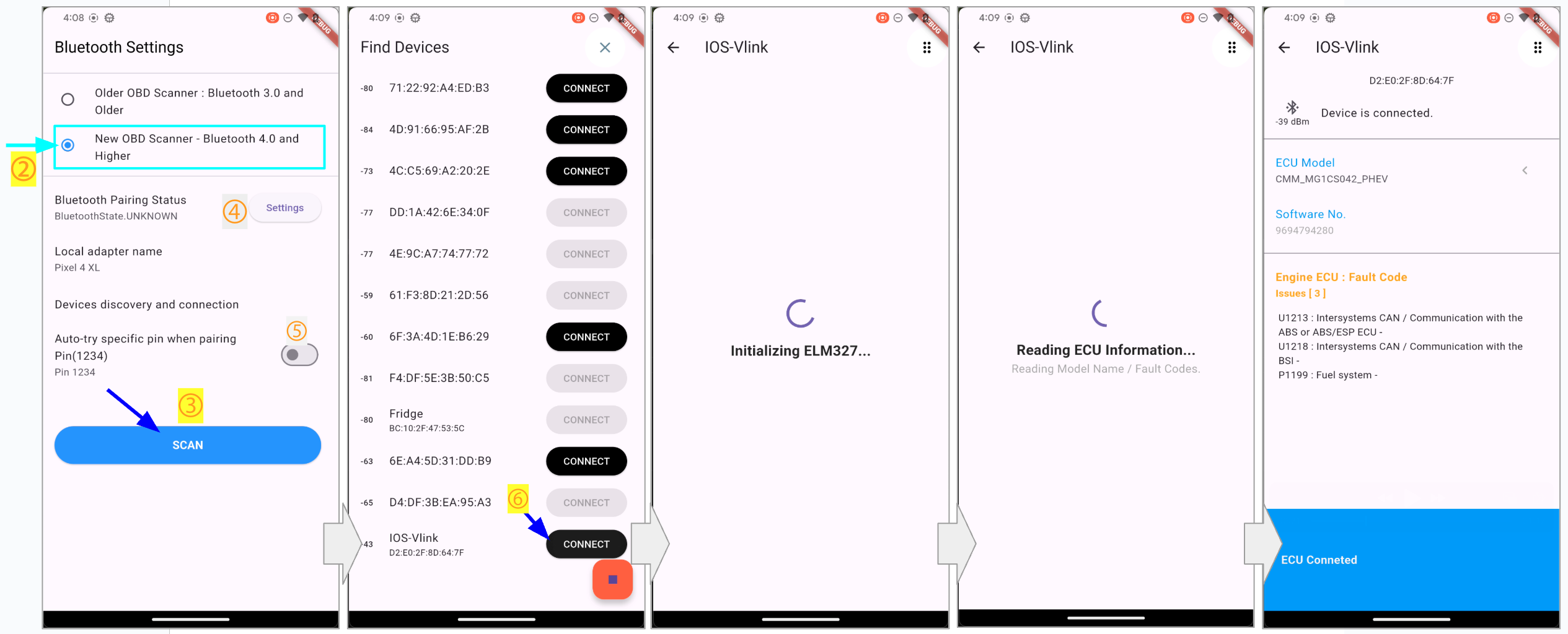BT3.0에서 4.0으로 전환하려면 기존에 설정된 자동 연결 모드 리셋후에 연결가능합니다. ECU 연결후에는 이전 연결이 메모리에 저장되므로 이것을 삭제해야 초기 블루투스 설정 화면 셋팅할 수 있습니다.