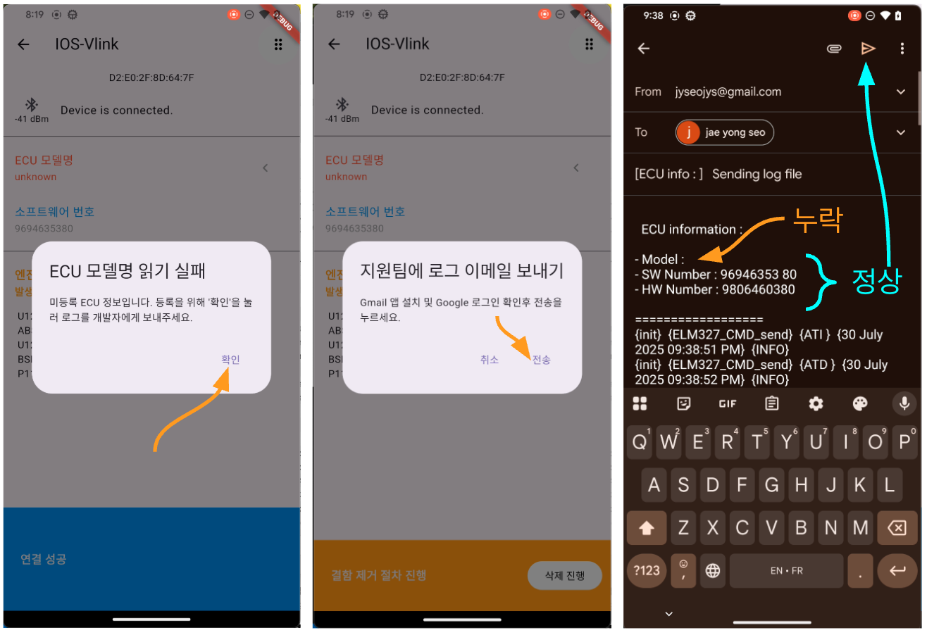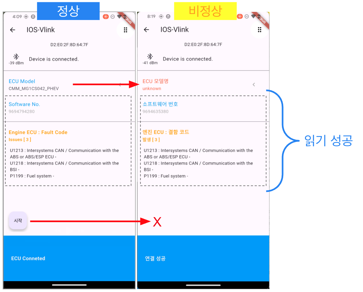 최근 발생한 사례중 Softwore No.와 Fault code 정보를 가져오지만, ECU 모델명 미인식 사례가 있었습니다.