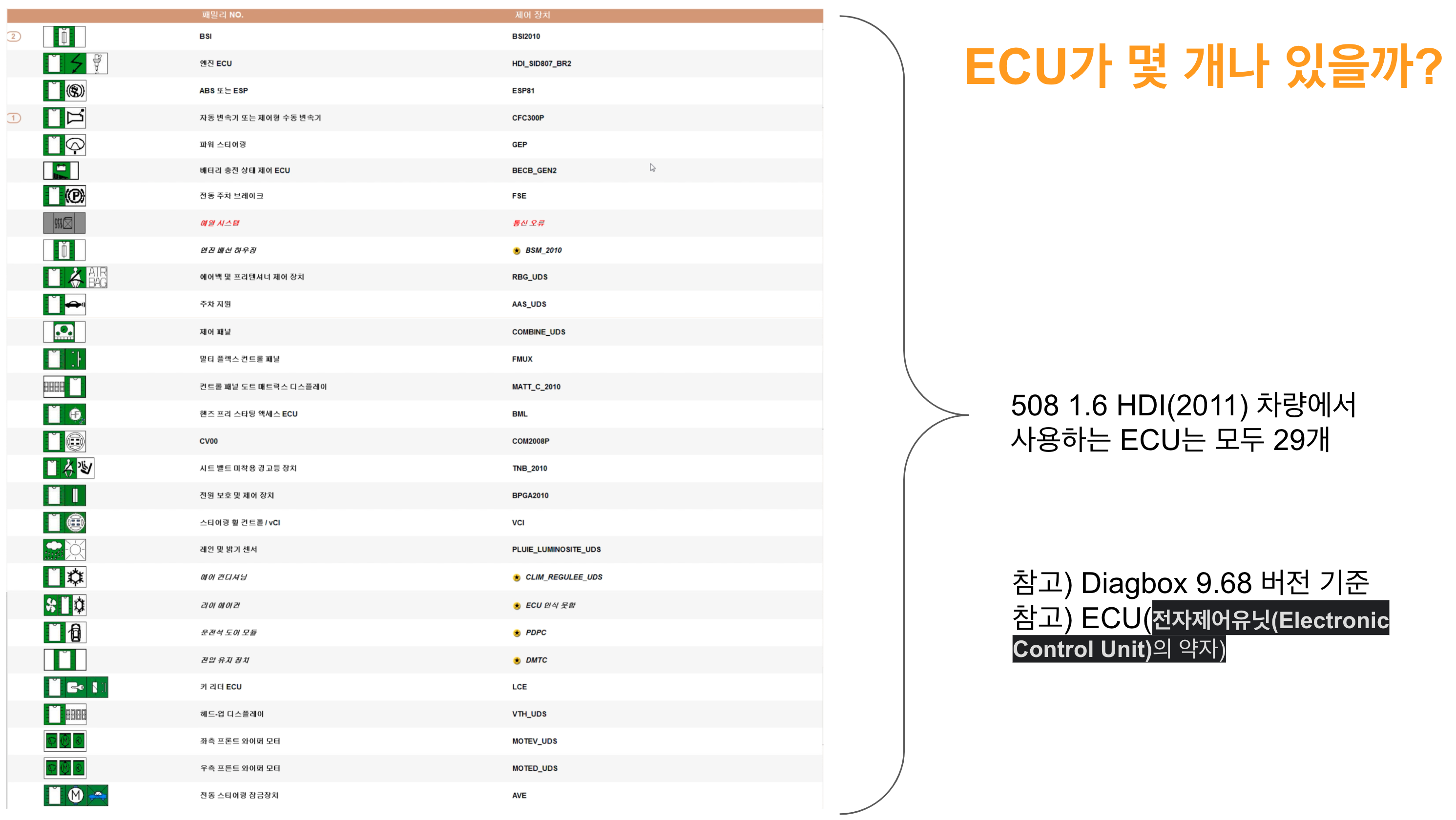Diagbox로 확인해보면.... ECU(Electric control unit)가 무려 29개!!!
