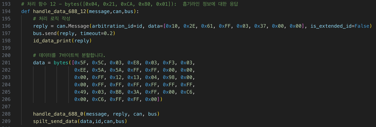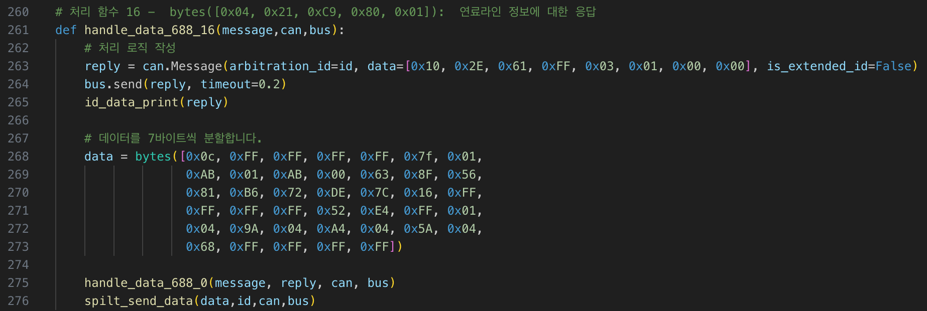 1. 위의 data를 Python-CAN(이전글) 적용할 수 있도록 하나의 함수로 만듭니다.