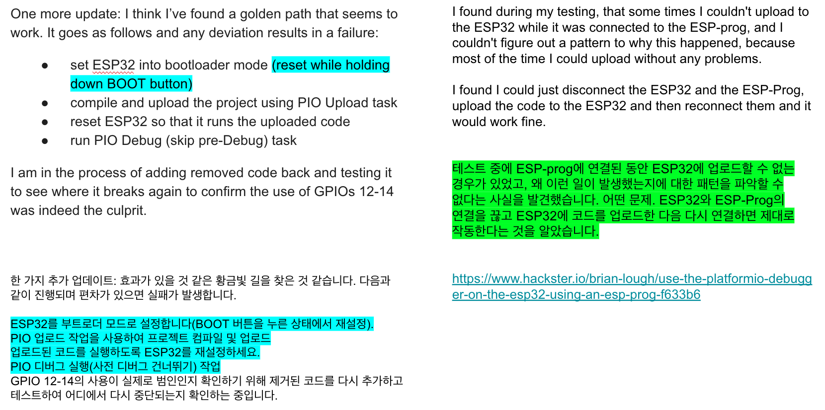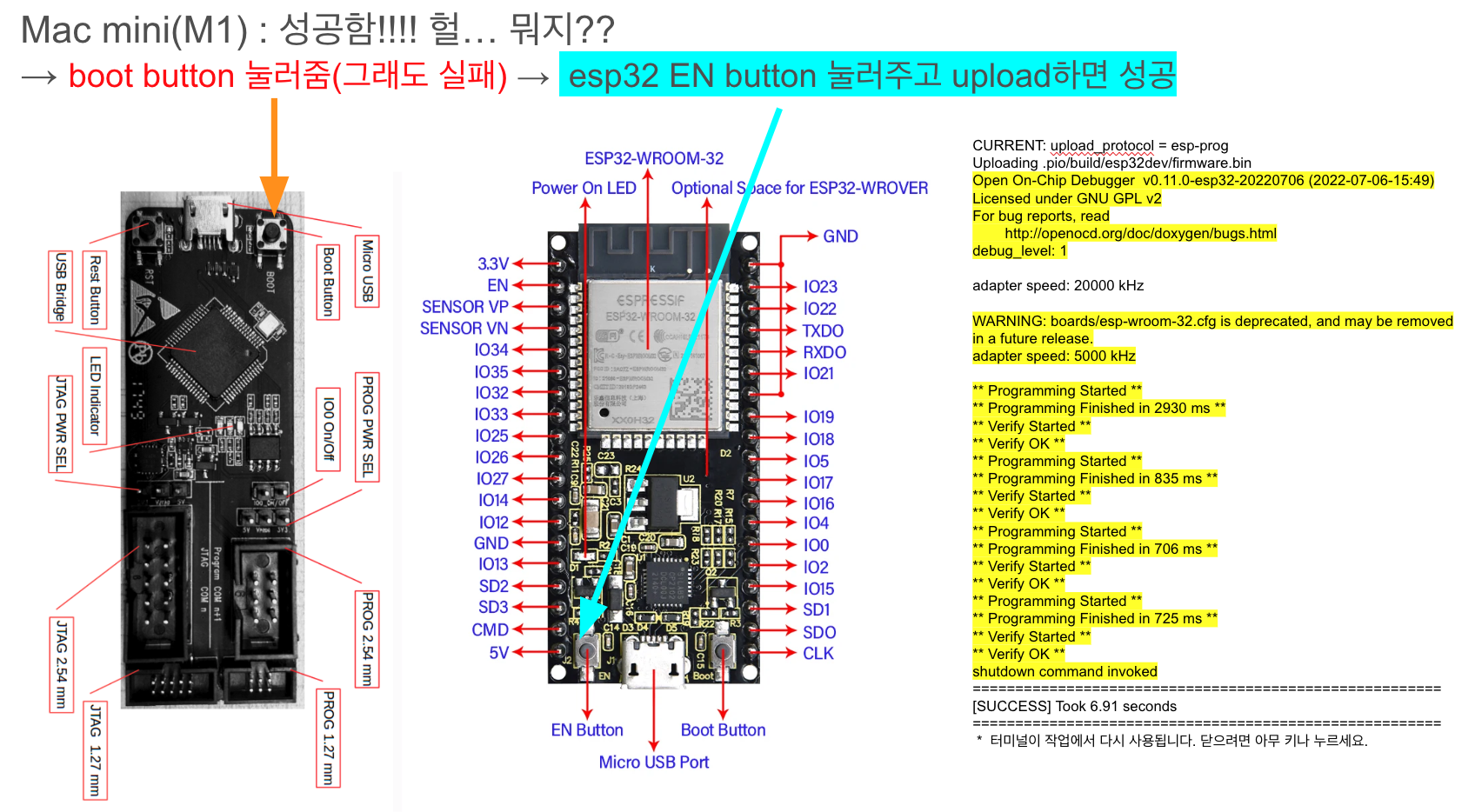 ;Upload 실패시 ESP-prog의 "Boot Button" 눌러주면 upload 성공합니다.