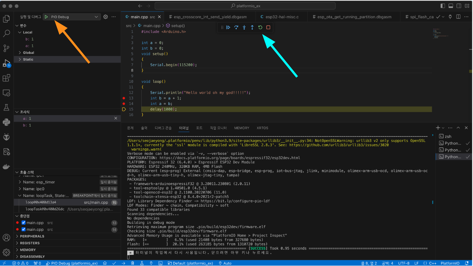 3) ESP-prog를 사용하여 ESP32에서 PlatformIO 디버거 사용