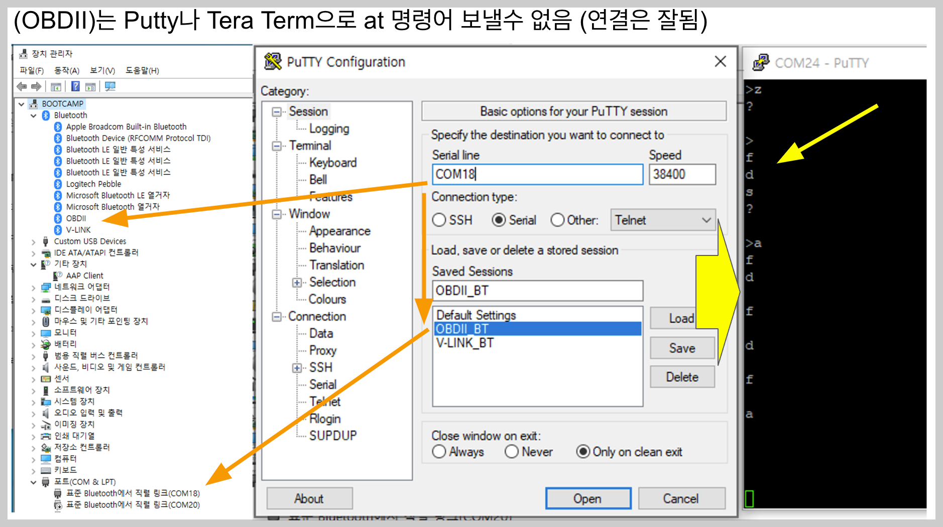 하지만, putty로 명령 전송이 BLE에서 이상하게 전달됩니다.(이유는 못찾았습니다.)