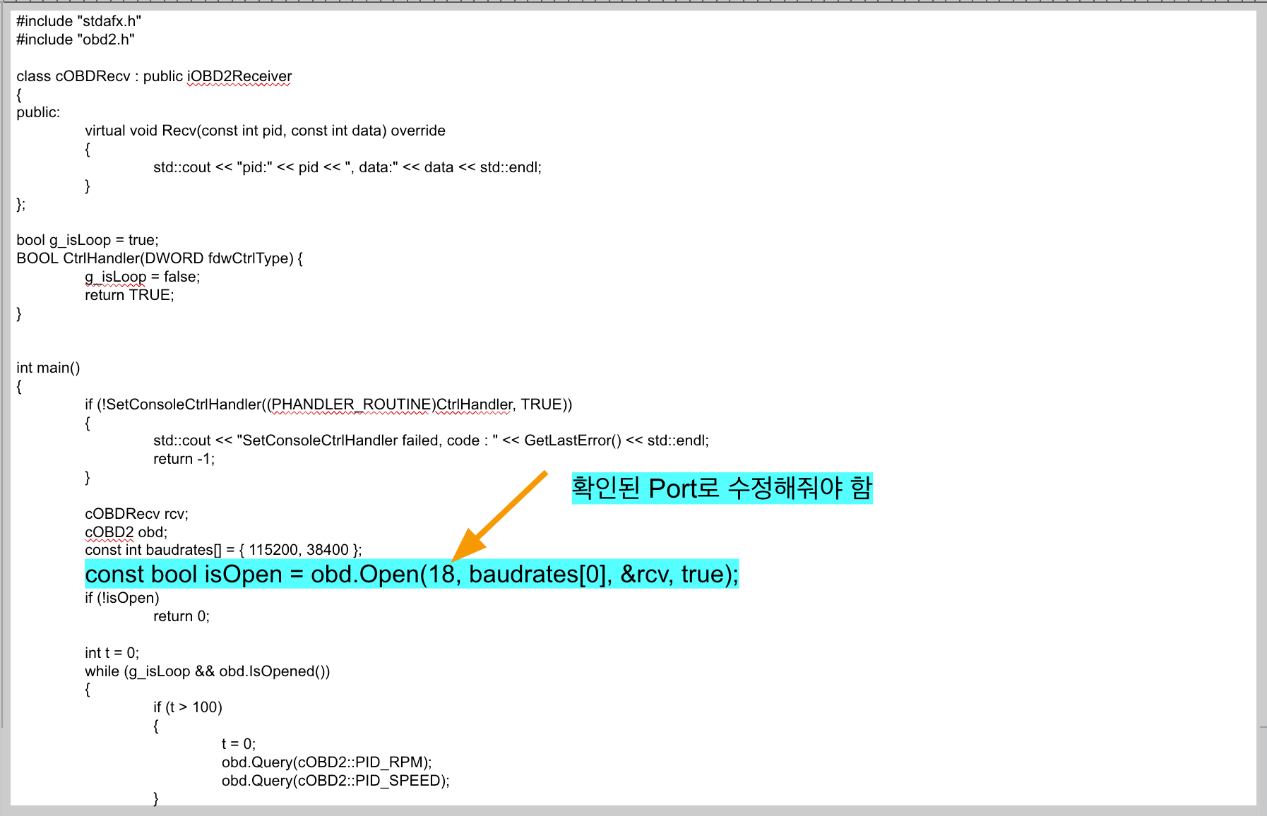 두번째로 참고한 소스 코드는 OBD2라는 C++ 코드입니다.