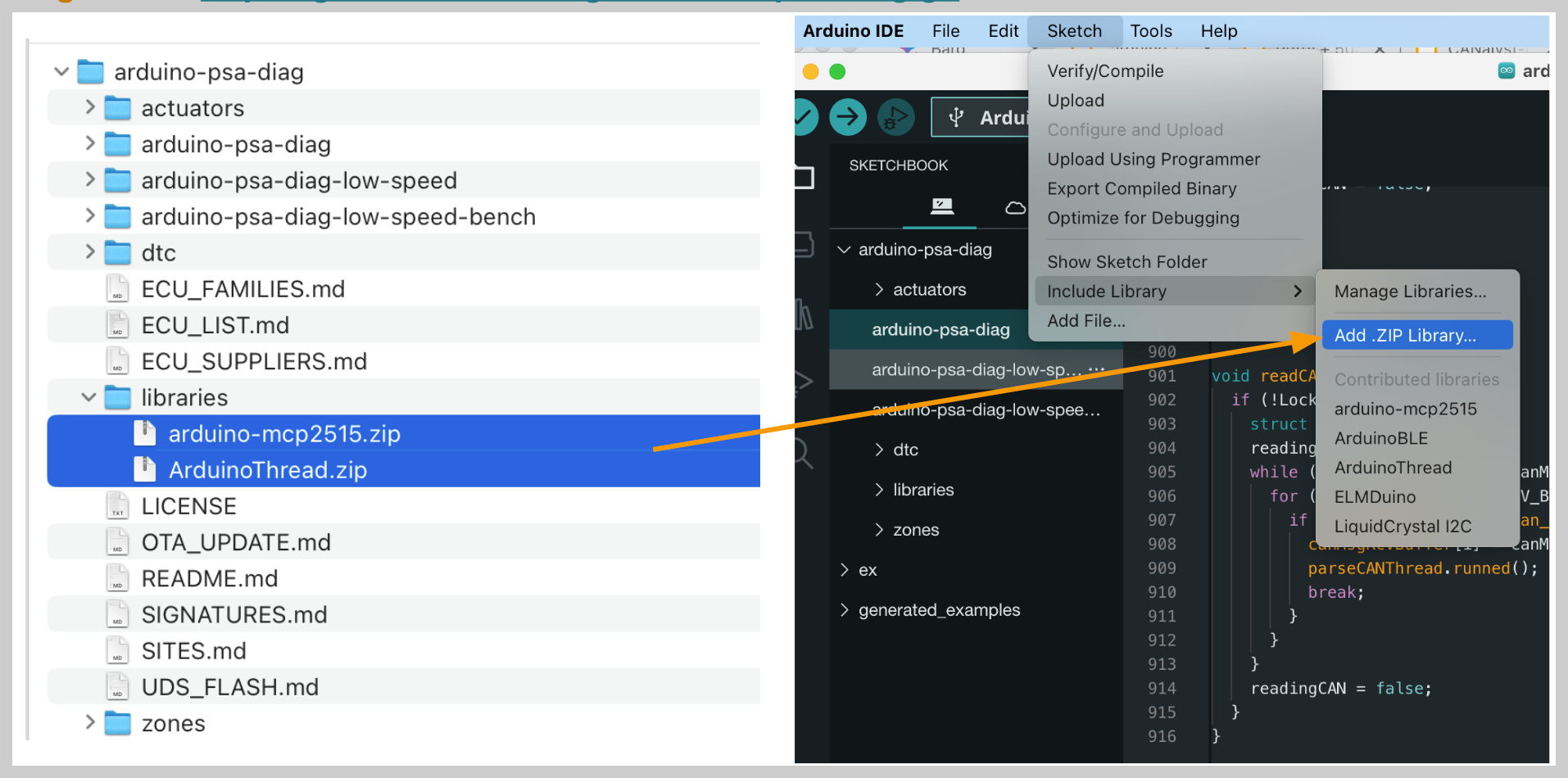 1) 소스 코드 다운로드하고.. git clone https://github.com/ludwig-v/arduino-psa-diag.git ← 다운로드시 내부에 libraries가 있음