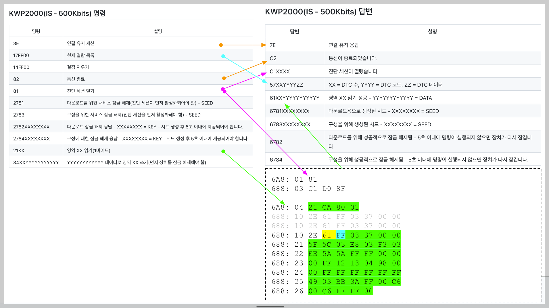 워낙 난수표 같은 data만 오고 가는데... 그 의미를 파악하는데 많은 도움이 됩니다.