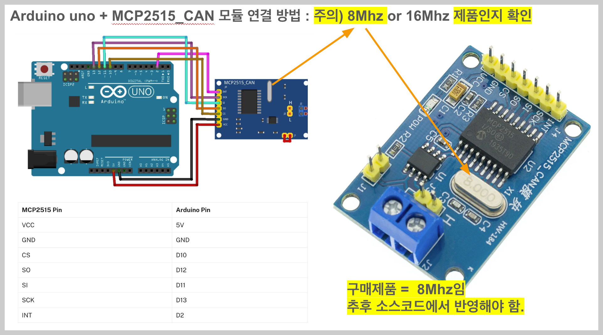 3)MCP2515 제품 사양 확인 (8Mhz or 16Mhz 제품)