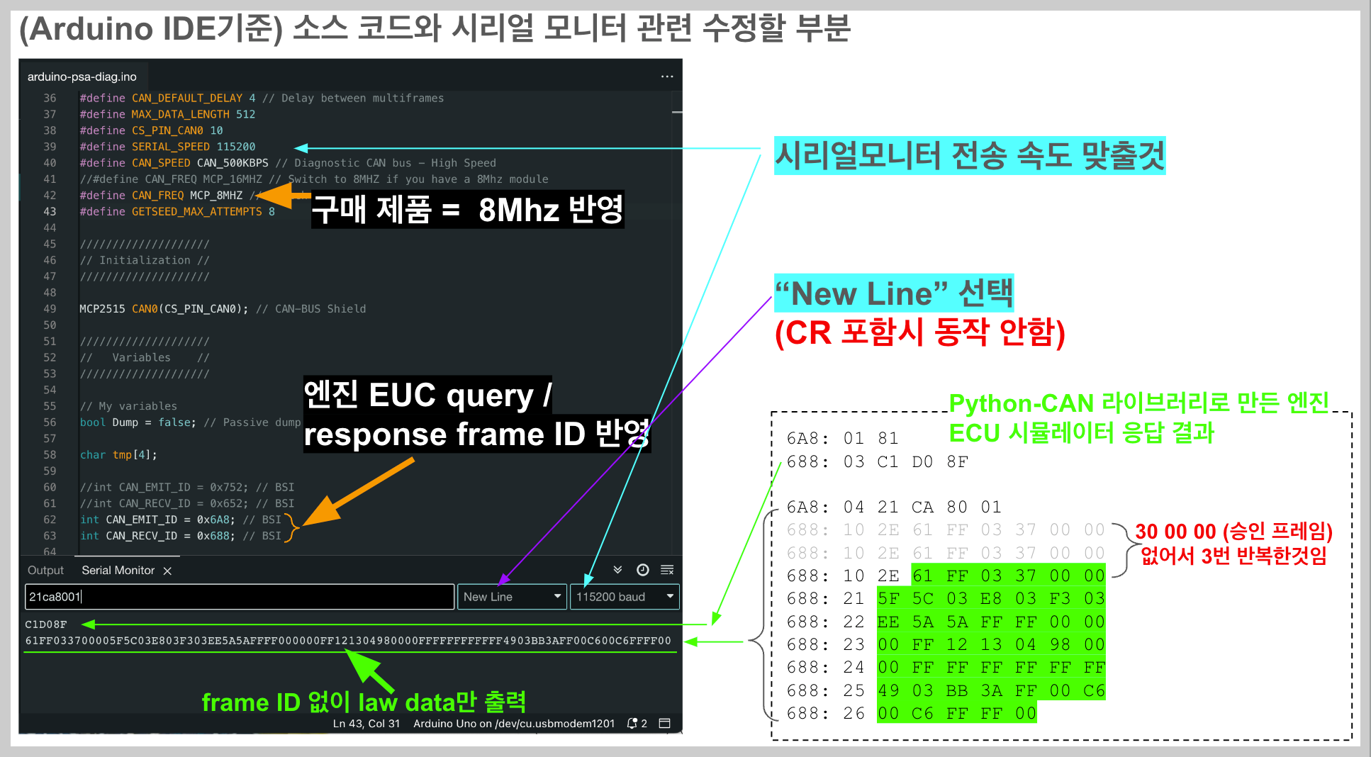 ;푸조 차량의 어떤 ECU와 통신할지 Frame ID 결정(여기서는 엔진 ecu로 변경)