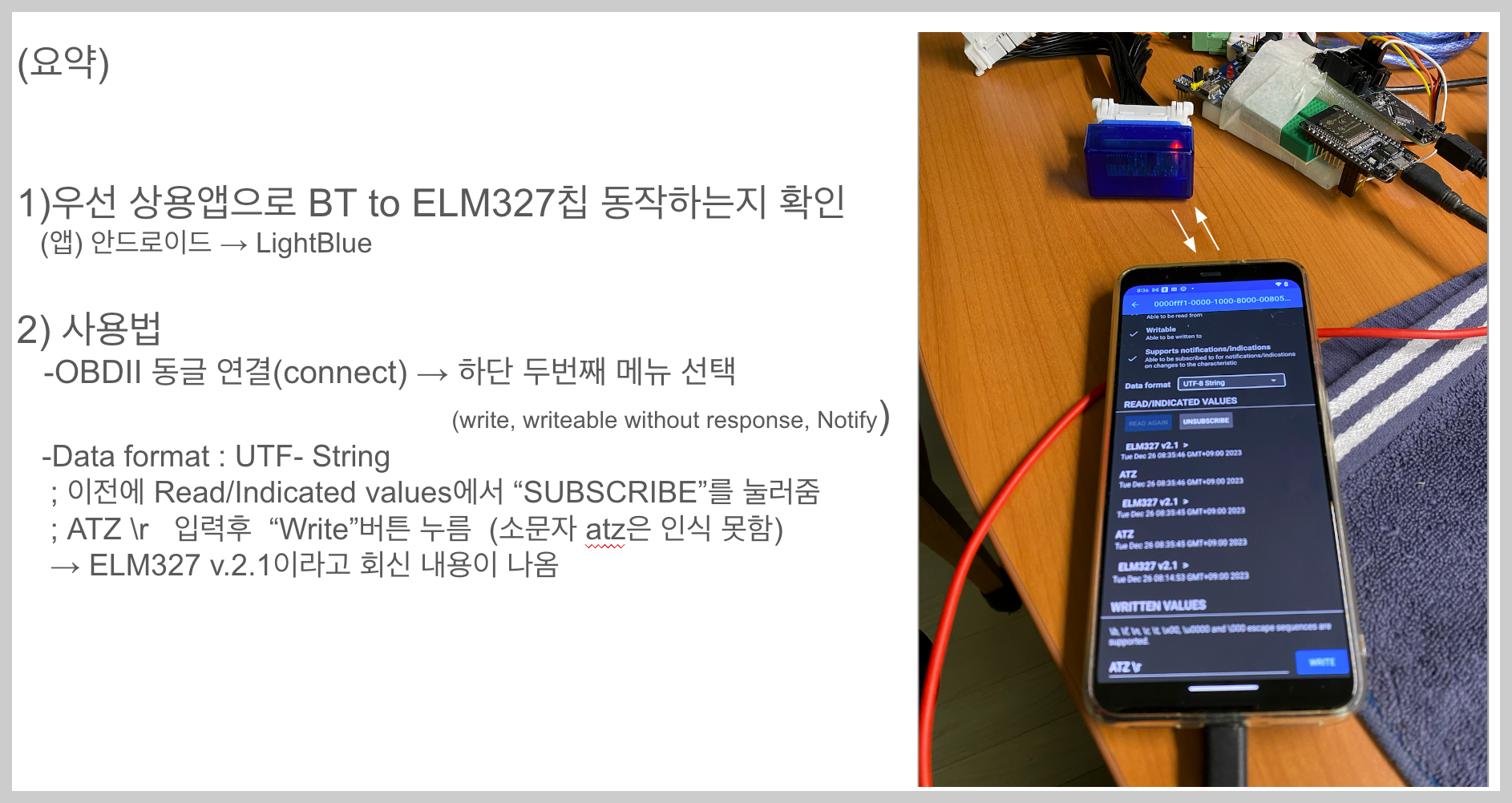 지금까지는 PC, 또는 ESP32등에서 ELM327 AT 명령 전송/수신에 대한 경험이 있지만 스마트폰에서 진행해 보지 못해서,