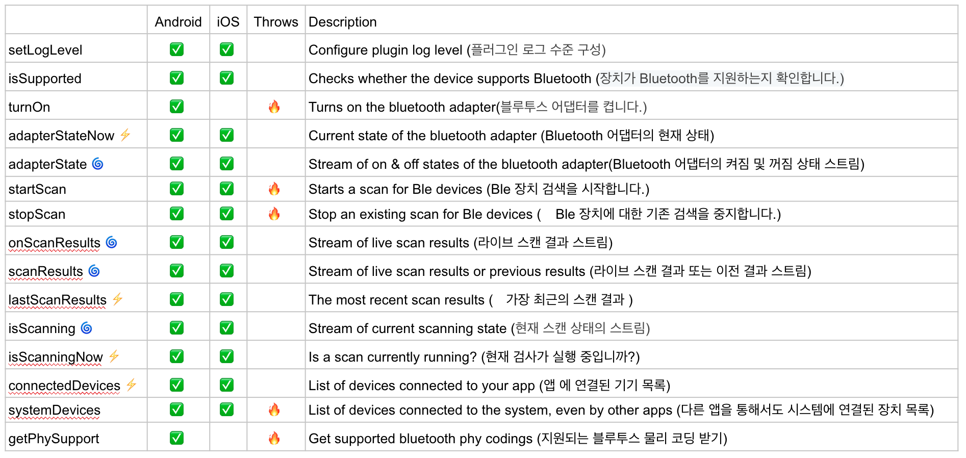 (1)FlutterBluePlus API = 15개