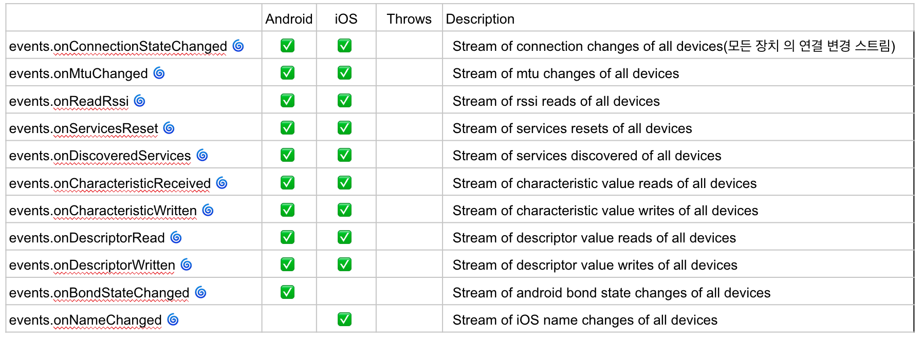 (2) FlutterBluePlus Events API = 11개