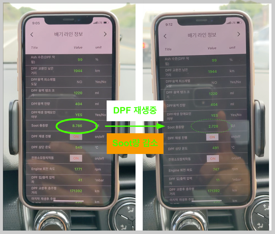 하지만, 주로 짧은 거리의 시내 주행 하는 경우 DPF 재생중에 운행 중단되면 재생 STOP되고 이런 상황이 누적되면 "DPF 입/출력 압력차"를 점점 높힐 것으로 예상됩니다.