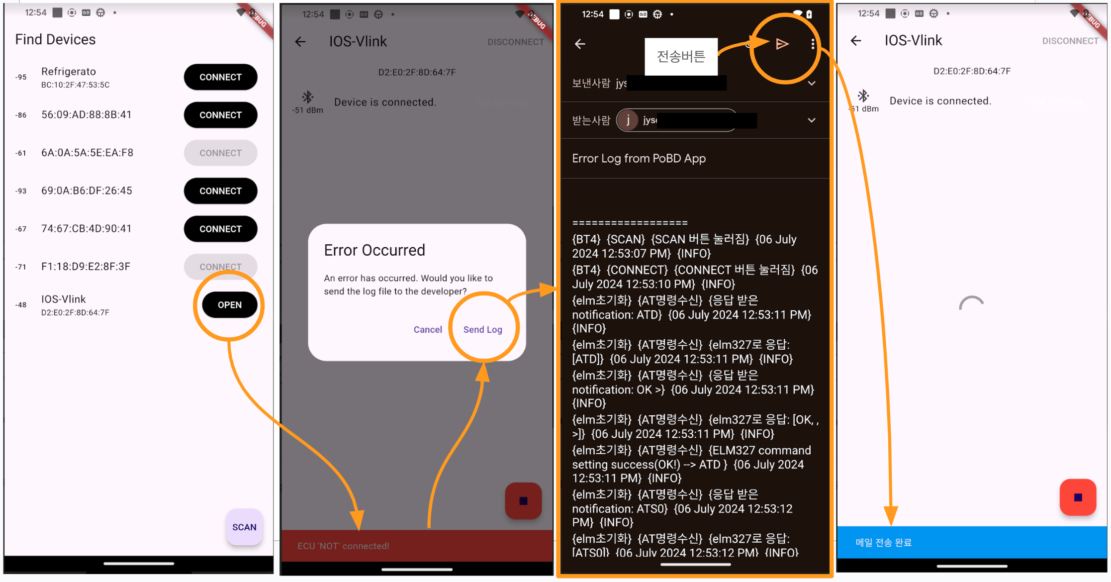피드백을 받아 봤는데 보내주신 의견이나 사진만으로 원인 찾는 것이 쉽지 않아서 에러 로그를 개발자에게 전송하는 기능 넣었습니다.