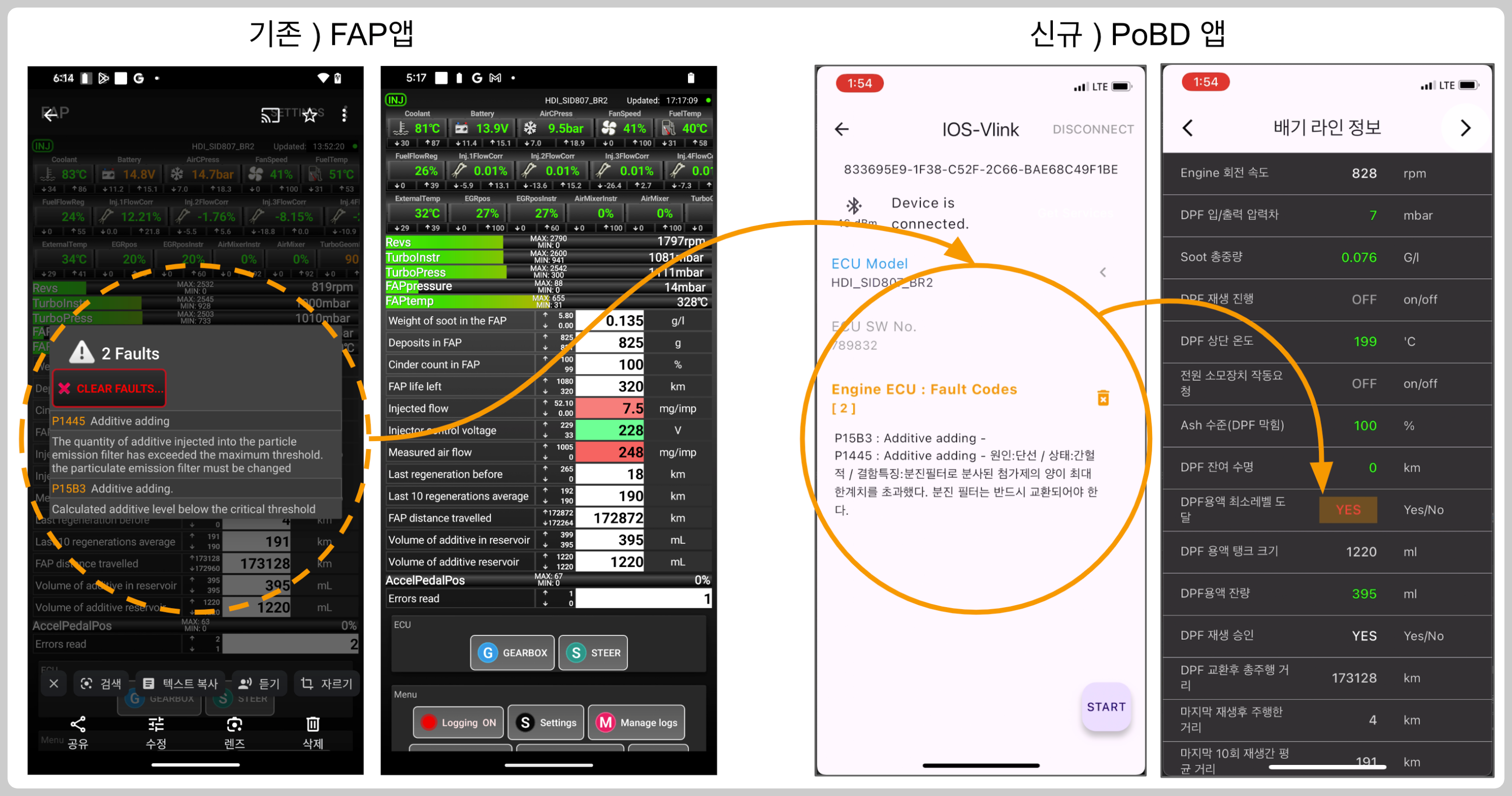 < FAP앱과 PoBD앱 비교> 아래 사진 참조,