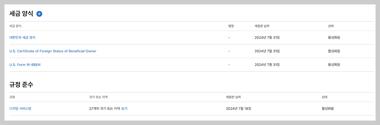 사업자 등록증, 은행계좌 등등... 이런거 제출하라고.. 그래야 배포가 된다고 하네요.