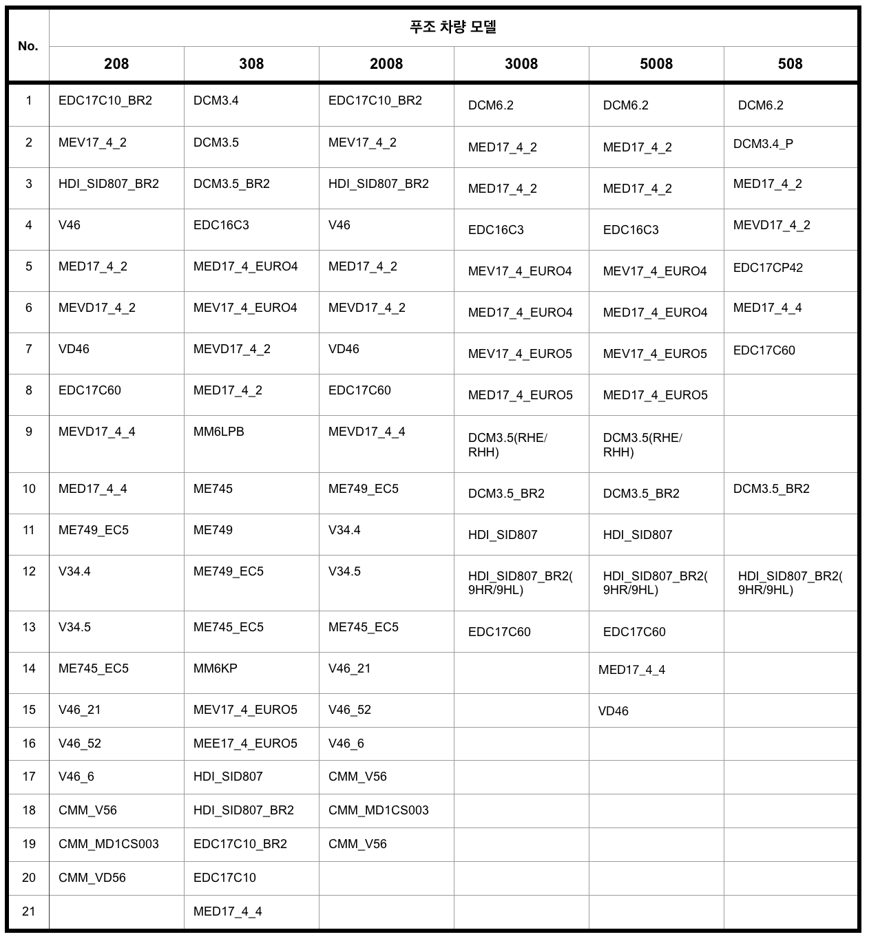 1) 우선 푸조 차량에 어떤 ECU 모델 사용하는지 조사했습니다. ( 이렇게 많을 줄이야.....)